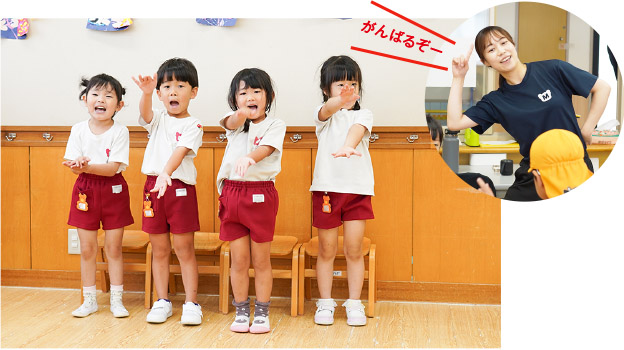 体操 お天気のいい日は、園庭で体操します。