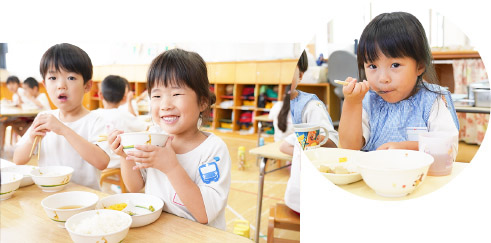 昼食 「いただきます!」 おいしい給食の時間です。子どもたちと一緒に食べます。 ![]() |